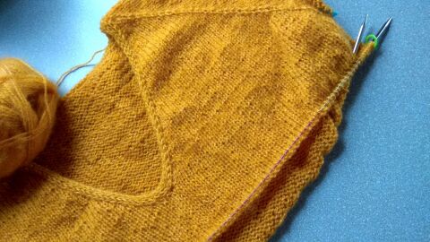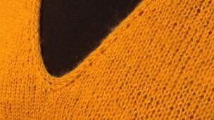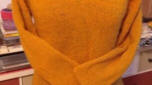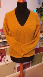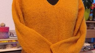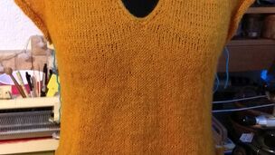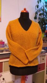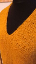 "Halenka pletená lícovým žerzejem od shora dolů s výstřihem do V."