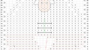 27 řada rub: 1 hl, 23 obr, 1 hl - přízi ustřihneme pokud jsme pletli jinou barvou