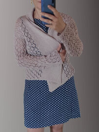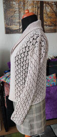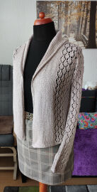 Kabátek s krajkovým vzorem a šálovým límcem.