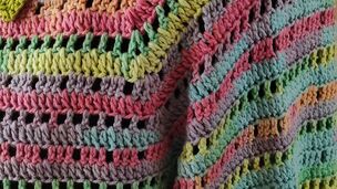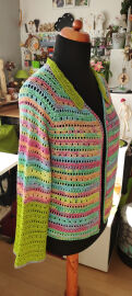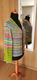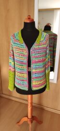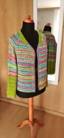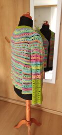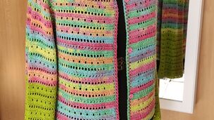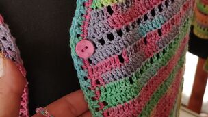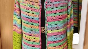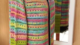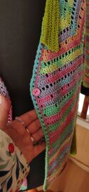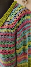 "Háčkovala jsem bez návodu. Použila jsem jednoduchý vzor (dlouhé sloupky, řetízková oka). Na okraj jsem použila křížené dlouhé sloupky."