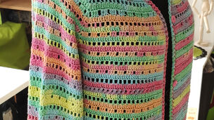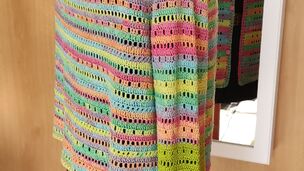 Háčkovala jsem bez návodu. Použila jsem jednoduchý vzor (dlouhé sloupky, řetízková oka). Na okraj jsem použila křížené dlouhé sloupky.