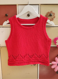 "Top s ažurovým vzorem pletené z příze DROPS Pari, pletený odspodu nahoru."