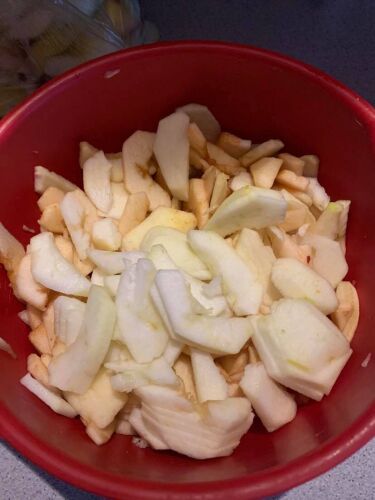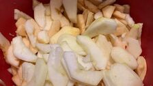 Než si těsto odpočine, připravíme náplň. Jablka oloupeme, očistíme a nakrájíme na tenké plátky.