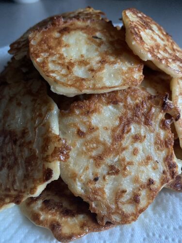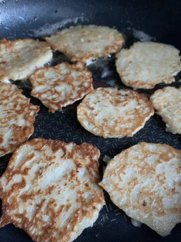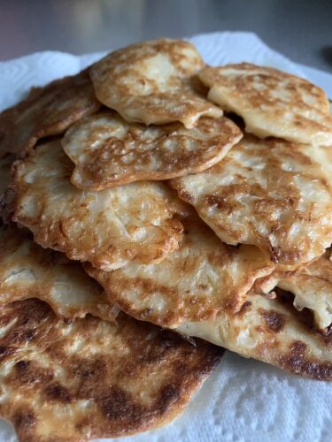 Těsto pokládáme lžíci do rozbaleného oleje či sádla a opékáme dozlatova.