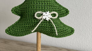 "Malá vánoční dekorace- háčkovaný stromeček na stůl, parapet, nebo na komodu. Podstavec z kousku březového dřeva. Stromeček samotný je komplet háčkovaný a vnitřkem je vyplněný kousky látek. Na stromeček ještě budu dávat malý svítící led řetěz s LED diodami- objednala jsem ho z