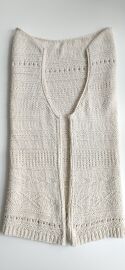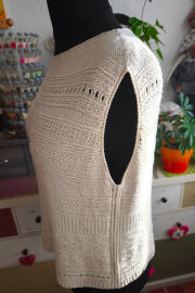 "Top je pletený odshora dolů. Na výstřih jsem použila zkrácené řady, vzory jsem vymýšlela v průběhu pletení 😊"